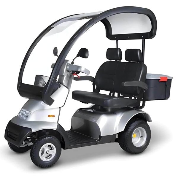 The Afikim Afiscooter S4 Dual Seat is a top-of-the-line mobility scooter designed for comfort, stability, and long-distance travel with a companion. Featuring a spacious dual seat, this premium scooter allows two passengers to ride together in comfort, making it perfect for couples or caregivers and users. Built with a powerful motor, full suspension system, and extra-wide pneumatic tyres, the Afiscooter S4 delivers a smooth and stable ride across various terrains. Its ergonomic design includes an adjustable tiller, cushioned seating, and intuitive controls for effortless operation. With an impressive driving range and high weight capacity, it’s ideal for both daily errands and leisure outings. Safety features such as bright LED lighting, rearview mirrors, and advanced braking provide peace of mind during every trip. Stylish, durable, and exceptionally comfortable, the Afikim Afiscooter S4 Dual Seat is the ultimate choice for those who value independence, reliability, and shared mobility experiences.