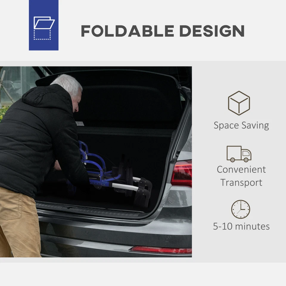A versatile mobility aid that works as both a rollator walker and a wheelchair when needed. It has a comfortable seat and backrest, adjustable handles and footrests, large wheels with hand-controlled brakes, and a lightweight foldable aluminium frame for easy transport and storage.