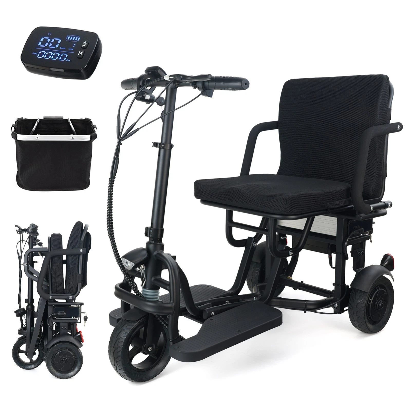 The Three-Wheel Foldable Electric Adult Mobility Scooter is a lightweight and portable scooter designed for easy travel and everyday use. With its compact folding frame, it fits easily into a car boot and is ideal for adults who need reliable mobility support. The three-wheel design provides smooth turning and excellent manoeuvrability in tight spaces, while the 3-speed adjustment lets you choose between slow, medium, and fast modes for different environments. It features a comfortable seat, simple controls, solid tyres, and a stable electric braking system — making it a practical choice for shopping, neighbourhood trips, and daily movement.